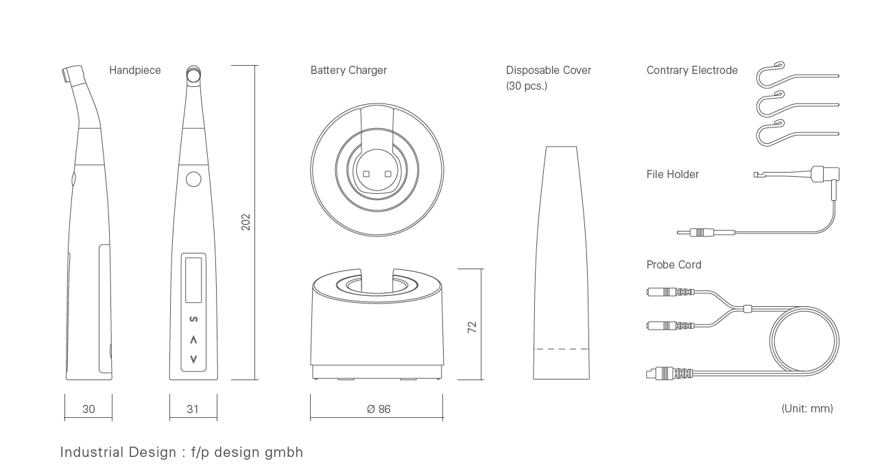 ویژگی ها دارای هد هنپیس ( 9mm) ، حرکت رفت و برگشت خاص ( 90 به 180 درجه ) ، دارای الکترود داخلی ( برای استفاده بهینه از طول فایل) ، قابلیت چرخش هد آنگل تا 290 درجه