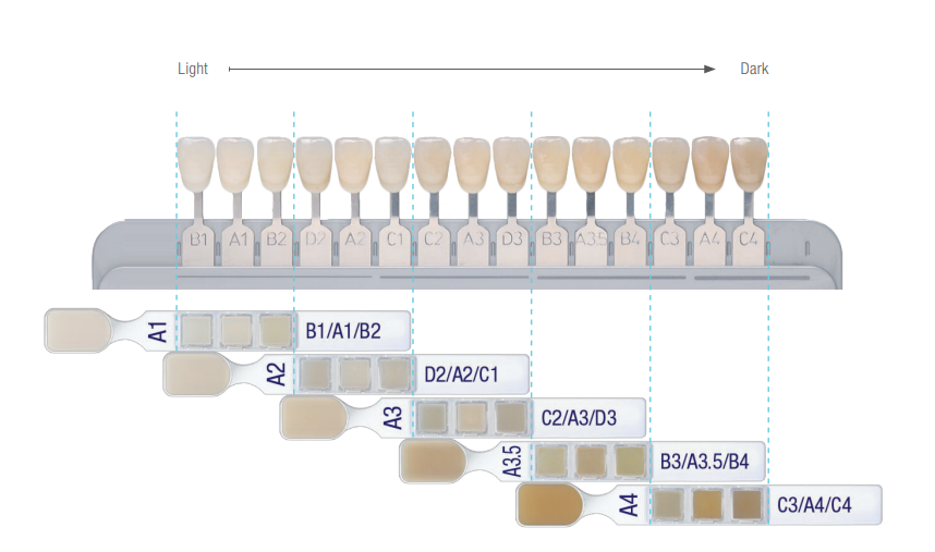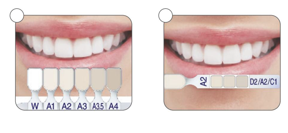 نزدیکترین شید را از بین شش گزینه در معرض نما یش Shade Guide انتخاب بکنید.