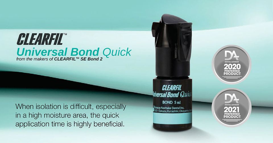 CLEARFIL Universal Bond Quick یک باند تک بطری است که فلوراید آزاد می کند. با فرمول اصلی MDP و مونومر جدید AMIDE(یک فناوری منحصربفرد) RAPID BOND را ارائه می دهد. این مونومر( AMIDE ) به سرعت در عاج و مینای دندان نفوذ می کند که زمان انتظار را از بین می برد و جذب آب را به طور چشمگیری کاهش می دهد. همچنین حساسیت تکنیک و زمان کاربرد را بدون به خطر انداختن استحکام باند، آب بندی یا حساسیت زدایی کاهش می دهد.